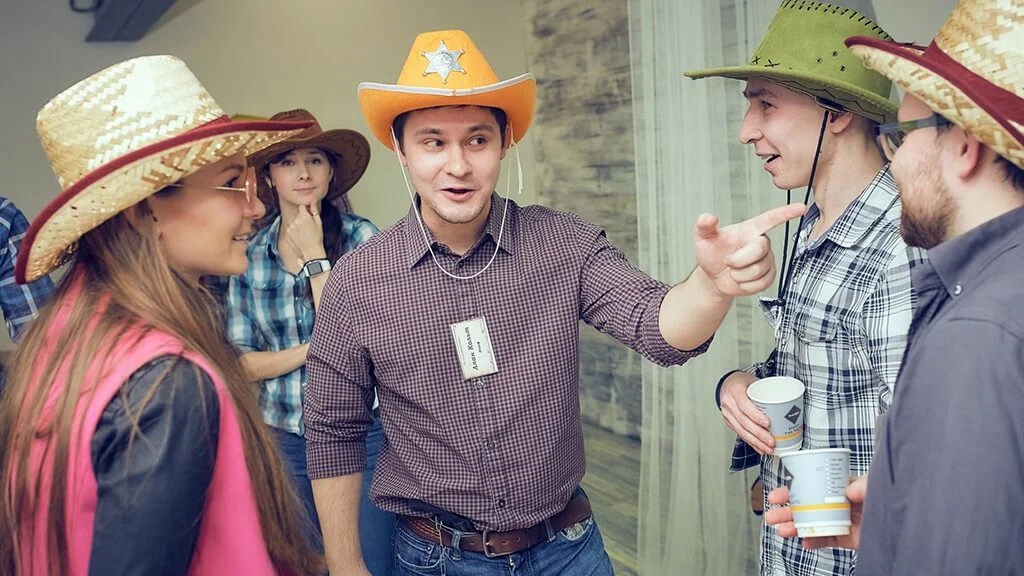 Квест на день рождения «Где-то на Диком Западе»: Кажется, шериф вычислил разбойника. Итак, наш преступник оказался самым тихим в салуне! Кто бы мог подумать, что за нарушением спокойствия стоял именно этот благородный джентльмен в ковбойской шляпе.
