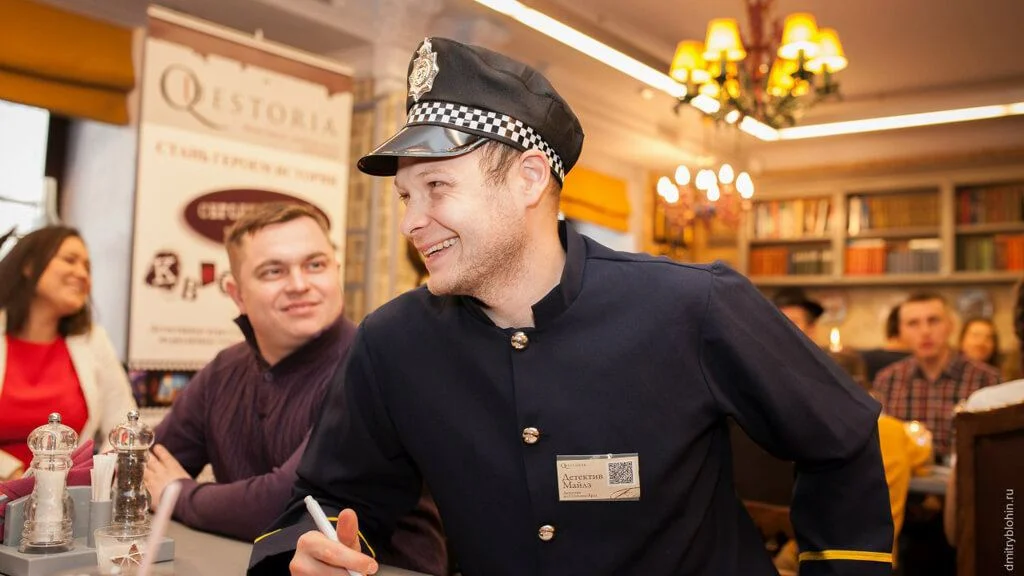 At the beginning of the party, we seat guests at the tables and give out the roles to each player. All teams play the same story simultaneously. Each table will have their own detective, criminal and suspects! The aim of the game is to come closer to solving the crime than the other teams, and score more points for correct leads about the investigation. The Detective Battle is very gripping! Considering that the teams play right at the tables, even those guests who usually "sit out" of the holiday program become part of the process.