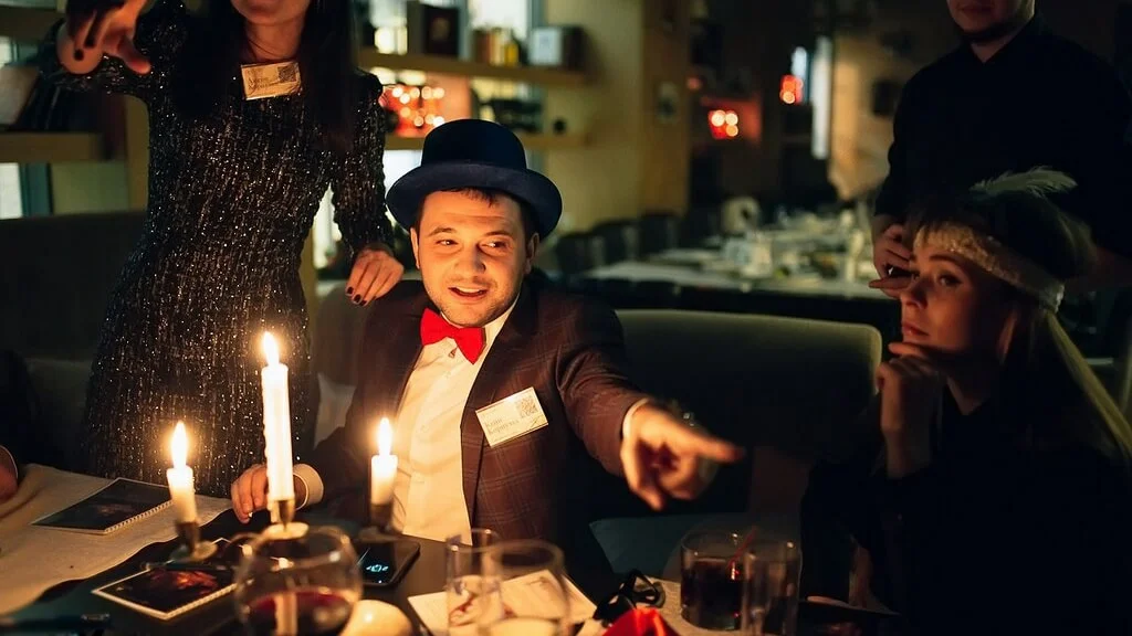 Мы подберём для вас кафе, идеально подходящее для игры. В зависимости от количества гостей: просторное, с несколькими залами или одну уютную комнату. Постараемся, чтобы интерьер подчеркнул атмосферу сценария — средневековая таверна, литературный салон или палуба корабля.
